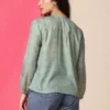Refined Sophistication with Pale Teal Self Printed Viscose Muslin Popover Blouse